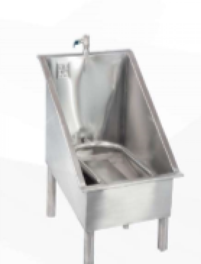 Lavatório de botas fabricado totalmente em aço inox 304, com acionamento mecânico por pedal. Medida: 0,52x0,45x0,70