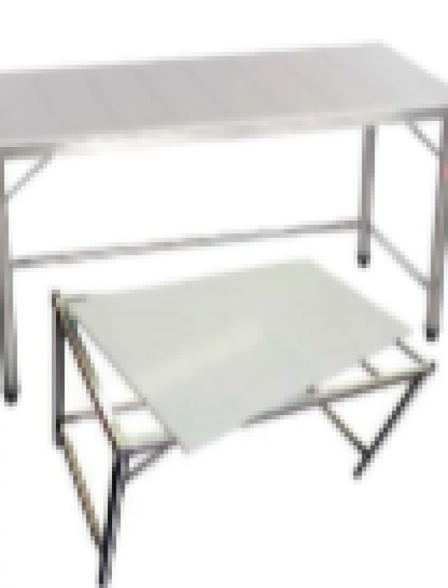 Mesa fabricada totalmente em aço inox 304, com tampo em polietileno 12 mm , prateleira inferior e sapatas niveladoras, disponível também com prateleira inferior lisa ou gradeada