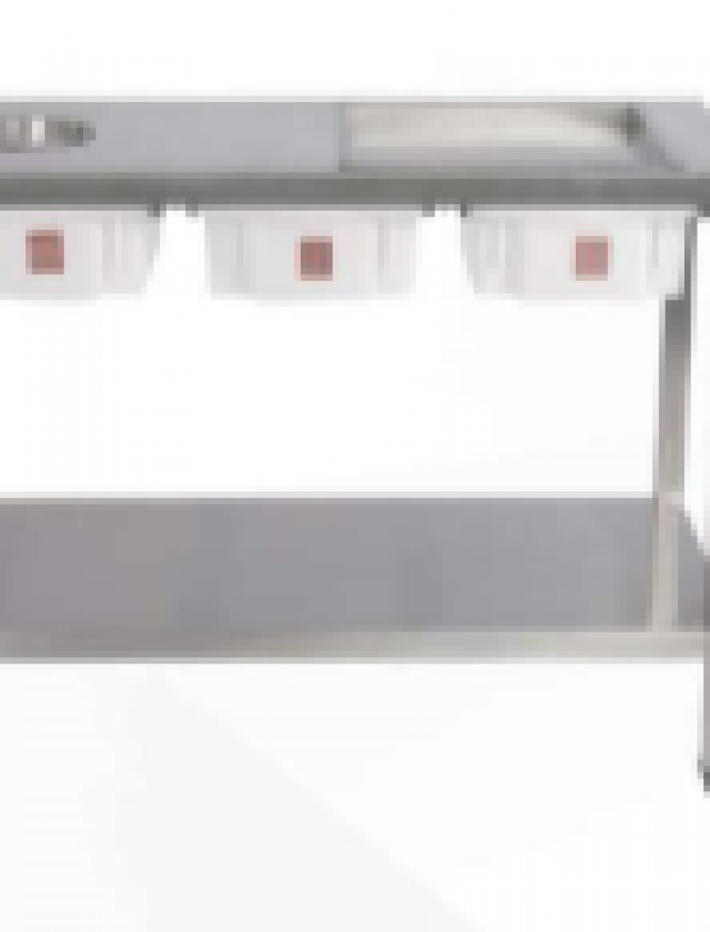 Mesa 1,10x0,50x0,85 totalmente fabricada em aço inox 304 própria para destrinchar frango. Com gavetas e cuba.